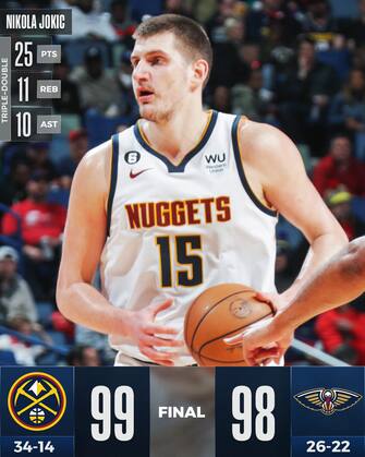 Chiude in tripla doppia Nikola Jokic - non una novità per lui in stagione - al rientro dopo il fastidio al bicipite femorale e autore di 25 punti, 11 rimbalzi e 10 assist. Sono 25 anche i punti raccolti da Jamal Murray, che di passaggi vincenti ne raccoglie sette, mentre Bruce Brown e Aaron Gordon aggiungono 11 punti a testa. Continua così la cavalcata dei Nuggets come miglior squadra della Western Conference, con Denver che allunga su Memphis (ora lontana 2 gare e mezzo) e Sacramento (dietro di sei partite)