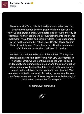 Il messaggio dei Cleveland Cavaliers