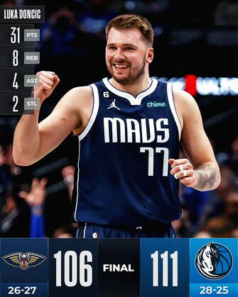 In casa Mavericks, come sempre, fa tutto Luka Doncic - anche restando sul parquet per 23 minuti; prima di lasciare il campo a causa di una brutta caduta e di un infortunio al tallone che preoccupa non poco Dallas: per l’All-Star sloveno sono 31 punti nel match con 12/19 al tiro e otto rimbalzi, uscito dal campo con i texani sul +27 in una gara totalmente in controllo e riaperta poi dagli ospiti nel momento in cui Doncic è venuto meno. Anche per questo motivo diventa fondamentale la diagnosi dell’infortunio, con i Mavs che sperano non sia nulla di grave