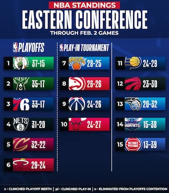 Questa la situazione nella classifica della Eastern Conference dopo le gare di questa notte