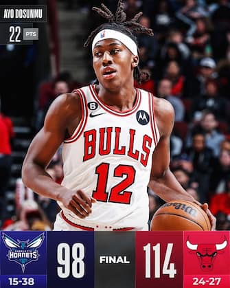 CHICAGO BULLS-CHARLOTTE HORNETS 114-98 | Massimo in stagione da 22 punti per Ayo Dosunmu, 20 punti per Coby White e Chicago batte così in casa i derelitti Hornets anche in una serata storta e incolore per DeMar DeRozan (15 punti con 4/12 al tiro) e Zach LaVine (10 con 3/8 dal campo). A Charlotte invece resta davvero poco a cui appigliarsi, con LaMelo Ball che chiude con 19 punti, otto rimbalzi e sei assist prima di essere espulso - la prima in carriera in NBA - a meno di 90 secondi dalla sirena per una mancato fischio su una stoppata subita