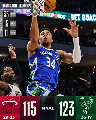 Gli Heat rimaneggiati (solo 8 i giocatori scesi in campo, visto che il nono a disposizione era Udonis Haslem) si battono ma non riescono a resistere a Giannis e soci, nonostante i 32 punti di Jimmy Butler e i 24 del nativo di Milwaukee Tyler Herro, a cui la sera prima era stata ritirata la maglia nel suo liceo della zona. Bam Adebayo chiude con 16 punti, 11 rimbalzi e 8 assist e Caleb Martin chiude con 17, ma Miami chiude la sua trasferta da quattro gare in fila con una sola vittoria raccimolata