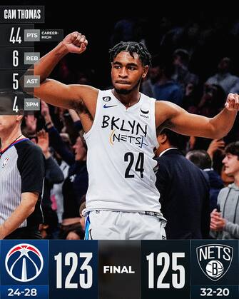 Protagonista indiscusso Cam Thomas, che firma il suo massimo in carriera da 44 punti in uscita dalla panchina e in soli 29 minuti di gioco: 16/23 al tiro, 4/5 dall’arco, cinque rimbalzi e cinque assist per un giocatore trascinante che ha dato la scossa decisiva a Brooklyn. Serata da record personale anche per Edmond Sumner - partito in quintetto in questa rotazione rivoluzionata da infortuni e richieste di trade: 29 punti con 9/19 al tiro, mentre sono 15 con 13 rimbalzi per Nic Claxton che aggiunge anche cinque passaggi vincenti e tre stoppate
