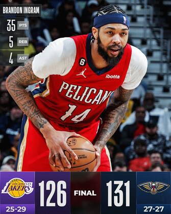 New Orleans invece si gode la miglior prestazione di Brandon Ingram da quando è tornato sul parquet dopo l’infortunio: negli ultimi 10 giorni infatti l’ex Lakers aveva mostrato ancora poca confidenza sul parquet nel tiro e nella resa, ritrovando però tutto insieme in un match per lui da 35 punti con 15/28 al tiro, 5 rimbalzi e 4 assist, mentre CJ McCollum ne aggiunge 23 con la tripla che nel finale di gara chiude i conti in favore dei Pelicans - che tornano a respirare dopo tre settimane difficili e ricacciano indietro proprio la risalita Lakers a Ovest