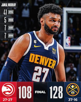 Atlanta prova anche a riaprire i conti portandosi fino a -8 a 5:49 dalla fine, spinta dai 28 punti di Dejounte Murray e i 20 di De’Andre Hunter, ma complice l’assenza di Trae Young per influenza non ha modo di opporsi al miglior Jamal Murray della stagione. Il canadese segna 11 dei suoi 41 punti all’interno del parziale di 15-2 che chiude la partita, a cui si aggiungono i 23 di Michael Porter Jr. e i 15 di Aaron Gordon. Fuori per scelta tecnica Bones Hyland, che potrebbe essere scambiato nei prossimi giorni