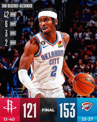 Shai Gilgeous-Alexander in particolare è sembrato aver preso sul personale il ko rimediato in Texas, segnando 20 punti nel solo primo quarto e chiudendo alla fine con 42, frutto di un eccellente 14/23 al tiro (tra cui solo 0/2 da tre) e 14/15 ai liberi. Mike Muscala firma il suo massimo stagionale da 19 e Josh Giddey ne aggiunge 17 con 8 rimbalzi e 10 assist in una serata da 57.7% di squadra e 45.7% da tre (21/46) per rimanere in corsa per un posto al play-in nella classifica del selvaggio Ovest