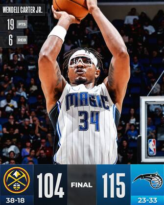 ORLANDO MAGIC-DENVER NUGGETS 115-104 | Ci pensano le riserve dei Magic a regalare a Orlando una vittoria di prestigio, abili a tenere testa ai Nuggets - una delle migliori squadre NBA a due mesi dall’inizio dei playoff: 17 punti a testa per Cole Anthony e Bol Bol, mentre a guidare i sette giocatori in doppia cifra di Orlando ci pensa un Wendell Carter Jr. da 19 punti con 7/11 dal campo. Un dato per tutti riassume la profondità che è mancata agli ospiti: 56-10 i punti in favore dei Magic arrivati a gara in corso