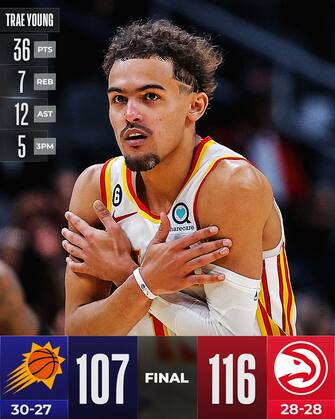 A guidare Atlanta ci pensa ancora una volta Trae Young, che forse dalla deadline di mercato si aspettava di più, ma che nel frattempo mette a segno 25 dei suoi 36 punti nella ripresa, conditi con 12 assist e sette rimbalzi, 5/8 dall’arco e anche nove palle perse. Fa tutto lui, mentre John Collins - che aveva preparato le valigie, ma è rimasto ancora in Georgia - aggiunge 16 punti con 6/12 dal campo, incalzato da un Onyeka Okongwu in doppia doppia (11+11) in uscita dalla panchina