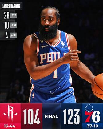 PHILADELPHIA 76ERS-HOUSTON ROCKETS 123-104 | Terzo successo in fila dei Sixers, trascinati dalle loro stelle: da ex James Harden segna 29 punti con 10 assist, ne aggiunge 23 Joel Embiid, sono addirittura 26 quelli di Tyrese Maxey dalla panchina con 10/16 al tiro e 4/8 da tre. Houston in picchiata concede il 56% al tiro ai Philadelphia (non andando oltre il 40%) e perde la sesta in fila, nonostante i 29 punti di Jalen Green