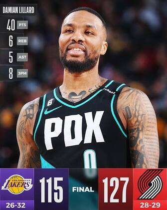 Lillard è ancora una volta dominante, e mette a referto 40 punti, 6 rimbalzi e 5 assist. Per lui ci sono 8 triple a segno su 14 tentativi (13/23 dal campo e 6/7 ai liberi). Vanno in doppia cifra per i Blazers anche Simons e Thybulle a quota 14 e Sharpe, che ne mette 15 in uscita dalla panchina. Portland è ora 11esima a Ovest, due posizioni davanti ai Lakers