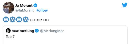TUTTI VOGLIONO McCLUNG: JA MORANT | Abbandonata Georgetown, McClung comunica via social di aver ridotto a 7 il numero delle università dove sceglierà di continuare la sua carriera universitaria. E Ja Morant con un semplice "come on" lo invita a scegliere Murray State, per raccogliere la sua eredità ai Racers