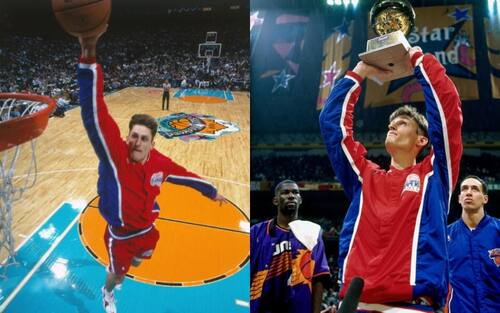 WHITE MEN "CAN" JUMP | Parafrasando il titolo originale del famoso film "Chi non salta bianco è", ci sono stati alcuni atleti bianchi che hanno preso parte alla gara delle schiacciate, ma sono stati davvero pochi. Tra quelli capaci di lasciare un segno ricordiamo Rex Chapman nel 1991, quindi dopo di lui Bob Sura, Chris Andersen (il famoso "Birdman") o Pat Connaughton ancora più recentemente: tutti però senza grande successo