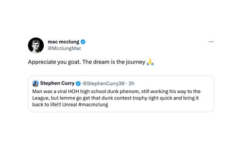 Lo stesso McClung ha trovato il tempo di rispondere a Curry: "Lo apprezzo, leggenda. Il sogno è il viaggio" ha scritto su Twitter