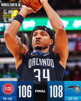 Banchero non tira bene dal campo con 4/13, ma riesce comunque a raggiungere la doppia cifra con 11 punti e a rendersi utile con 6 rimbalzi e 6 assist, uno dei sette giocatori in doppia cifra per i Magic guidati dai 21 di Franz Wagner. Il protagonista di serata Carter Jr. chiude con 14 punti e 14 rimbalzi (6 in attacco), firmando la 20esima vittoria di Orlando nelle ultime 35 partite — non abbastanza per risalire dal 13° posto a Est, ma abbastanza per far immaginare un futuro migliore per il gruppo di coach Mosley