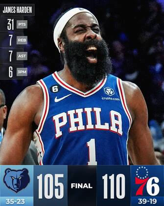 Embiid gioca al contrario per tutto il primo tempo, chiuso con un orribile 2/14 e una palla persa talmente brutta da meritarsi i “booo” dei suoi stessi tifosi, ma si riprende nel secondo tempo e chiude con 27 punti, 19 rimbalzi, 6 assist, 6 stoppate e 13/17 ai liberi, secondo miglior marcatore di squadra dietro i 31 con 7 rimbalzi e 7 assist di James Harden. Ai Grizzlies non bastano i 25 di Desmond Bane (19 nel primo quarto) per sopperire a una serata da 3/16 al tiro di Ja Morant (15 punti e 5 assist)