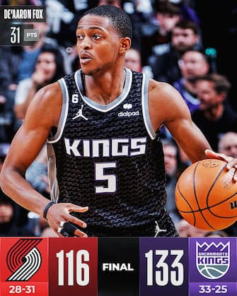 SACRAMENTO KINGS-PORTLAND TRAIL BLAZERS 133-116 | I Blazers reduci da un viaggio tumultuoso per le avverse condizioni meteo tengono a riposo praticamente tutto il quintetto, a partire da Damian Lillard e Jerami Grant, e i Kings (pur andando sotto di 16 nel primo quarto) hanno vita facile nel batterli scappando via in un secondo tempo dominato. Agli ospiti non servono i 26 punti di Nassir Little e i 24 di Cam Reddish per tenere il passo della terza forza a Ovest