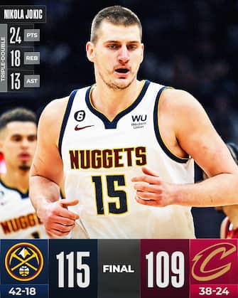 La legge di Jokic non fa prigionieri neanche stavolta: 22esima tripla doppia in stagione e 22esima vittoria per i Nuggets, sempre più primi in solitaria nella Western Conference. Il due volte MVP chiude con 24 punti, 18 rimbalzi e 13 assist anche contro la frontline dei Cavs, raggiungendo la doppia cifra in tre categorie statistiche diverse già nel terzo quarto (settima volta che accade, tutto il resto della NBA è a 9), e ispirando i 25 punti segnati da Porter Jr., miglior realizzatore dei suoi insieme ai 17 di Caldwell-Pope e i 16 del rientrante Jamal Murray