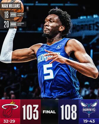 CHARLOTTE HORNETS-MIAMI HEAT 108-103 | Gordon Haywards segna 21 punti, il rookie Mark Williams - promosso ormai titolare dopo la partenza di Mason Plumlee destinazione Clippers - gioca la miglior partita della sua stagione raccogliendo 18 punti e 20 rimbalzi (entrambi massimo in carriera) e gli Hornets si prendono così il quarto successo in fila, mettendo insieme la miglior striscia di successi della loro regular season. Determinante anche il contributo di LaMelo Ball, che si accende nella ripresa in cui realizza 16 dei suoi 19 punti, conditi con 13 assist