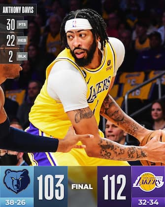 LOS ANGELES LAKERS-MEMPHIS GRIZZLIES 112-103 | I Lakers si prendono una vittoria e il nono posto virtuale a Ovest, in una serata speciale per i gialloviola in cui si festeggia un grande del passato come Pau Gasol: una scarica d’adrenalina utile a un gruppo costretto ancora una volta a fare a meno di LeBron James. A Memphis invece manca Ja Morant, impegnato in vicende e indagini lontano dal parquet, con i Grizzlies che incassano il terzo ko in fila e non vanno oltre i 26 punti e otto rimbalzi di Jaren Jackson Jr e i 16 realizzati da Tyus Jones