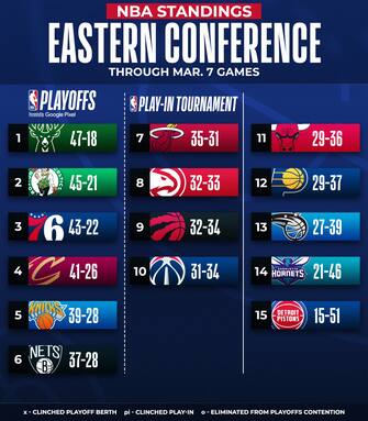 La classifica e la situazione della corsa playoff della Eastern Conference a un mese dal termine della regular season