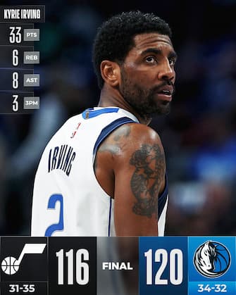 Kyrie Irving non ha perso il vizio neanche passando ai Mavericks, mantenendo il primato di miglior giocatore per punti segnati nell’ultima frazione: ne arrivano 17 contro i Jazz, in un match complessivamente da 33 punti per l’ex Nets che manda a segno anche una delle triple più pesanti negli ultimi possessi e regala ai texani un successo che vale il 5° posto a Ovest, in una classifica strettissima in cui ogni risultato dell’ultimo mese di regular season potrebbe essere decisivo