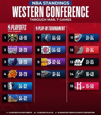 La classifica e la situazione della corsa playoff della Western Conference a un mese dal termine della regular season