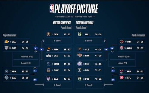 Se la stagione finisse oggi, questa sarebbe la playoff picture con tutti gli accoppiamenti della post-season, sia al torneo play-in che nel tabellone playoff