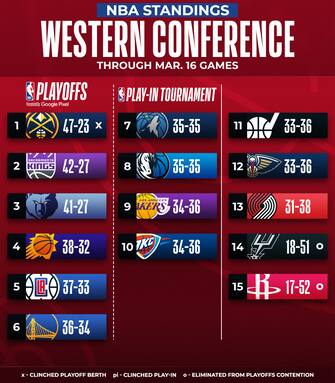 Questa la situazione in classifica nella Western Conference dopo le partite della notte