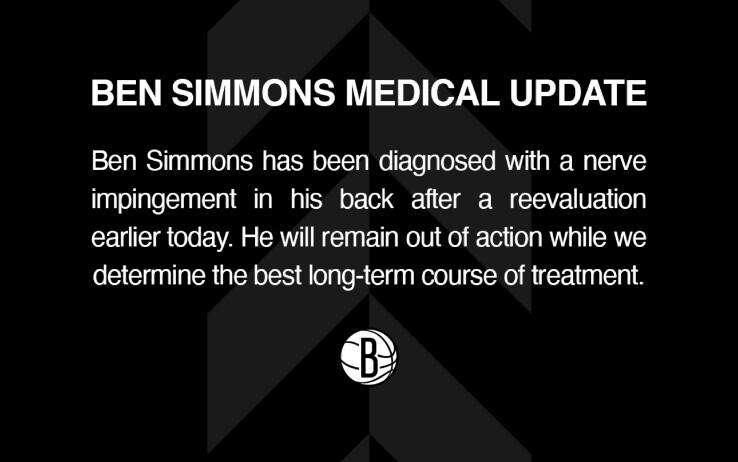 Brutte notizie dall'infermeria dei Brooklyn Nets (che in campo non vanno meglio: hanno perso le ultime 5 gare): Ben Simmons potrebbe aver già chiuso qui la sua stagione, peraltro segnata da minimi in carriera in quasi ogni categoria statistica