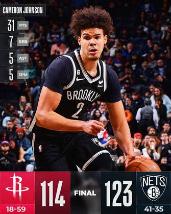 Proprio due dei giocatori arrivati in cambio di Kevin Durant fanno la differenza: Cam Johnson è il miglior realizzatore dei suoi con 31 punti a referto, mentre Mikal Bridges segna 12 dei suoi 27 nel quarto periodo per ispirare la rimonta dei padroni di casa. Ci sono anche 18 punti e 10 rimbalzi di Nic Claxton e 20 con 11 assist di Spencer Dinwiddie per una squadra capace di vincere due delle ultime tre gare, rialzandosi dopo quattro sconfitte consecutive in casa