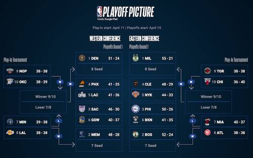 Se la stagione finisse oggi, questi sarebbero gli accoppiamenti a Ovest e a Est per il torneo play-in e i playoff, tutti ovviamente da seguire sui canali di Sky Sport