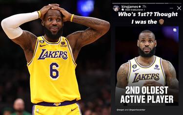 Ufficialmente Iguodala non è ancora ritirato, anche se già lo scorso anno aveva fatto intendere che la 2022-23 sarebbe stata la sua ultima stagione in NBA. Fino al momento dell’annuncio, però, il giocatore in attività più anziano rimane lui, con buona pace del Re e nonostante le loro carriere si siano incrociate in più di un'occasione, specialmente alle Finals