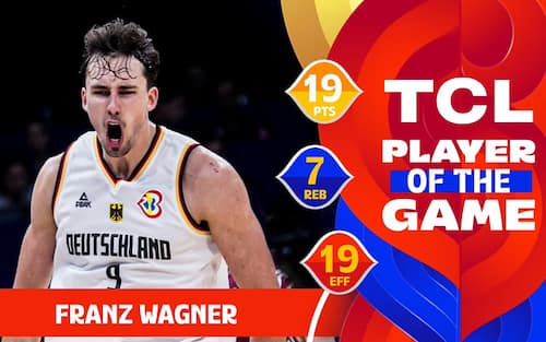 - Nonostante abbia disputato solo 4 delle 8 gare giocate (e vinte - tutte, unica squadra imbattuta del torneo), Franz Wagner è inserito nel secondo quintetto della manifestazione dalla FIBA insieme al nostro Simone Fontecchio, a Jonas Valanciunas, al playmaker lèttone Arturs Zagars e a Nikola Milutinov. Per Wagner si chiude un Mondiale da 16.8 punti, 6.5 rimbalzi, 3.0 assist e 1.3 recuperi di media