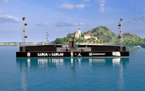 NBA, Luka Doncic e il torneo di 3-vs-3 sul campo galleggiante nel lago di Bled. FOTO