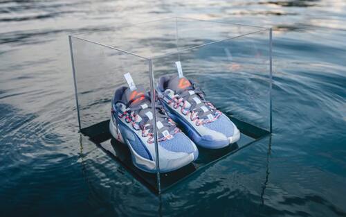 - Galleggiante il campo, galleggianti anche le scarpe (inserite in una bacheca trasparente) che la superstar dei Dallas Maverick ha scelto - fin dai colori - dedicare a un gioiello naturalistico del suo Paese come il lago di Bled. E l'attenzione al paesaggio è anche sottolineata dall'impiego di materiali riciclati nella fabbricazione della scarpa
