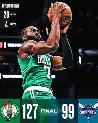 - Jaylen Brown segna 18 dei suoi 20 punti nel solo primo tempo e i Celtics vanno all’intervallo già avanti di 26 lunghezze sul campo degli Hornets, controllando agilmente fino al termine del match toccando anche il +40 nel quarto periodo. I biancoverdi privi di Al Horford mandano in doppia cifra tutto il quintetto (14+12 per Porzingis, 15 per White, 11 a testa per Tatum e Holiday) a cui si aggiungono i 12 di Neemias Queta, mentre ai padroni di casa non servono i 16 di LaMelo Ball e i 14 di Terry Rozier