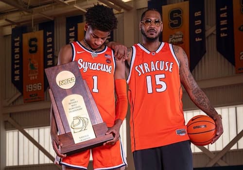 - Di quella edizione 2003 delle Final Four NCAA Carmelo Anthony fu il miglior giocatore, e votato come tale dopo una finalissima dominata con 20 punti e 10 rimbalzi contro Kansas. Oggi il trofeo di campione NCAA è simbolicamente baciato da suo figlio Kiyan, di cui si dice un gran bene...