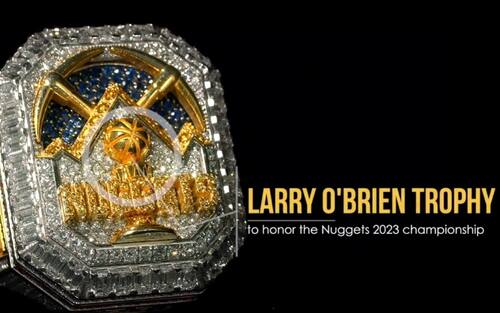 - L'anello consegnato ai Nuggets include non solo il logo della squadra in una versione retro (quella con i picconi di qualche anno fa) ma anche il logo classico (il famoso "rainbow skyline") che per anni ha fatto di Denver una delle squadre con il logo più iconico