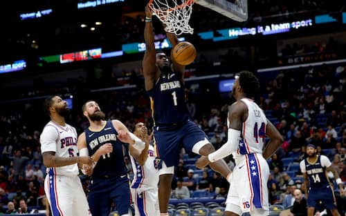 - Nick Nurse, costretto a rinunciare a Joel Embiid, prova a giocare senza veri lunghi di ruolo e Zion Williamson lo punisce prendendo possesso dell’area: la stella dei Pelicans segna 33 punti con 11/12 dal campo, 8 rimbalzi e 6 assist