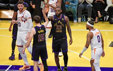- La tripla di Kevin Durant che potrebbe valere il pareggio e il supplementare si trasforma in un airball e a Las Vegas ci vanno i Lakers. I padroni di casa controllano la prima parte di gara, ma Phoenix inizia il 3° quarto con un parziale di 14-0 con cui perfezionano il sorpasso. Da lì in poi si va punto a punto, sulle spalle di Devin Booker (21 punti ma 6/16 dal campo) e di Anthony Davis (27 punti e 15 rimbalzi) e LeBron James. È però la tripla di Austin Reaves (20 punti) nel finale a lanciare i gialloviola