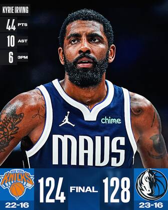 - Una delle ragioni per cui ormai quasi un anno fa i Mavs hanno portato Kyrie Irving a Dallas consisteva nell’esigenza di avere in squadra qualcuno che potesse prendersi sulle spalle l’attacco in assenza di Luka Doncic. Detto, fatto: contro New York lo sloveno è fermo per un problema alla caviglia e Kyrie guida i suoi alla vittoria con 44 punti, 10 assist e 4 rimbalzi, tirando con il 57.7% dal campo