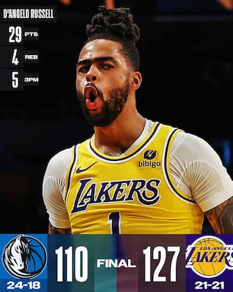 - Secondo successo in fila per i Lakers, che salgono al 50% di vittorie (21-21). Il parziale decisivo per i gialloviola arriva nel terzo quarto, dominato 42-27. Decisivo un super Anthony Davis a un assist dalla tripla doppia (28+12+9). D’Angelo Russell ne mette 29, con un ottimo 5/7 dall’arco, in una serata da 12/28 di squadra (Mavs solo 11/40). LeBron chiude con 25 punti, 8 rimbalzi e 8 assist, tirando 10/19 dal campo