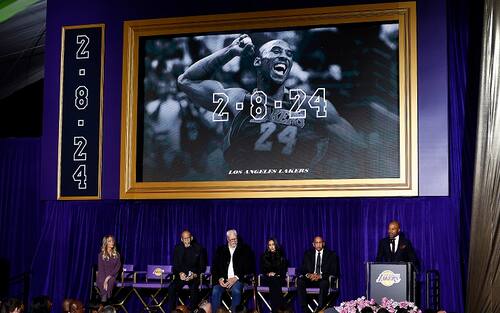 Tante grandi personalità del mondo Lakers erano ovviamente presenti alla cerimonia per lo svelamento della statua in onore di Kobe Bryant. Sul palco gli ex gialloviola Kareem Abdul-Jabbar e Derek Fisher, l'ex allenatore Phil Jackson, la moglie Vanessa e la proprietaria dei Lakers Jeanie Buss. E tanti sono stati i messaggi di amore e rispetto per la leggenda gialloviola scomparsa a gennaio 2020