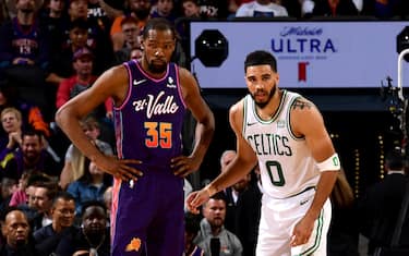 - Dopo due ko consecutivi contro Cleveland e Denver i Celtics ritrovano la vittoria resistendo a una prestazione maestosa di Kevin Durant, rimanendo avanti per tutto il secondo tempo e rispondendo a ogni tentativo di sorpasso degli avversari. Senza Porzingis fermato da un problema muscolare, sono Jayson Tatum (29 punti, 10 rimbalzi e 7 assist seppur con 11/28 al tiro) e Jaylen Brown (27) a farsi carico delle responsabilità offensive, trovando anche 27 punti dalla panchina con Kornet (14), Pritchard (10) e Hauser (3)