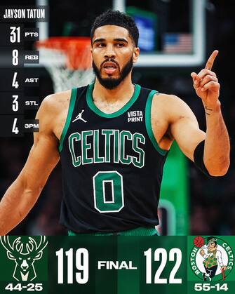 - Nella sfida al top della Eastern Conference manca ancora Giannis Antetokounmpo, i Celtics ne approfittano per comandare fin alla palla a due e quindi fare il vuoto nel 4° quarto dopo una per poi resistere al tentativo di rientro di Milwaukee nel finale. Jayson Tatum (31 punti e 8 rimbalzi) da una parte e Damian Lillard dall’altra (32 punti e 6 assist) guidano le due squadre nei parziali decisivi. Payton Pritchard entra dalla panchina e chiude con 19 punti, 6 rimbalzi e il 63.6% dal campo