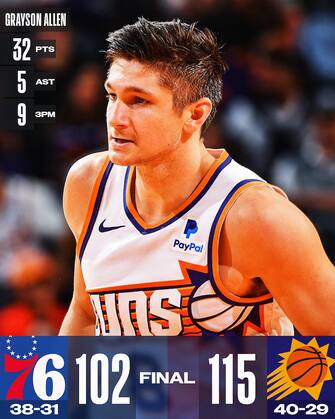 - Contro Phoenix, il piano difensivo di coach Nick Nurse si focalizza sui big three Devin Booker, Bradley Beale Kevin Durant, ma così facendo i Sixers concedono tiri aperti agli altri avversari. Ne approfitta Grayson Allen, che chiude da migliore in campo con 32 punti e 9/15 dalla lunga distanza, risultando decisivo nello scavare il solco tra le due squadre nella fase centrale della partita