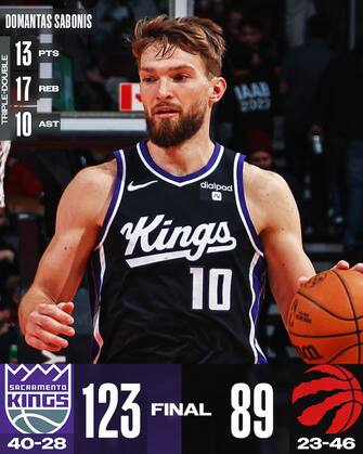 - La 24° trippla doppia (13 punti, 17 rimbalzi e 10 assist) stagionale di Domantas Sabonis, nonché la sua 51° doppia doppia consecutiva, sono il principale spunti d’interesse di una partita dominata da Sacramentofin dalla palla a due. I Raptors, bersagliati dalle assenze, hanno in Gary Trent Jr. (18 punti e 6 rimbalzi) l’unico a salvarsi, mentre per gli ospiti ci sono anche i 20 punti di De’Aaron Fox e i 17 in uscita dalla panchina del candidato sesto uomo dell’anno Malik Monk