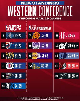 - I T'Wolves passano a Denver e riconquistano la vetta della Western Conference in coabitazione con i Thunder, vittoriosi contro Phoenix. Dallas vince in trasferta a Sacramento e consolida il suo 6° posto