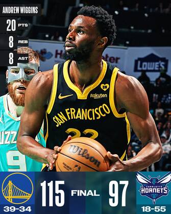 - Quella di Charlotte era una partita da vincere per gli Warriors, che devono tenere a bada Houston e conservare l’ultimo posto valevole per il play-in, e Steph Curry (23 punti e 4 assist) e compagni assolvono al loro compito senza troppi problemi. Andrew Wiggins (20 punti, 8 rimbalzi e 8 assist) conferma il suo buon momento di forma, mentre il rookie Trayce Jackson-Davis chiude con 18 punti e 8 rimbalzi dopo essere partito in quintetto. Per gli Hornets ci sono 22 punti e 9 rimbalzi di Miles Bridges