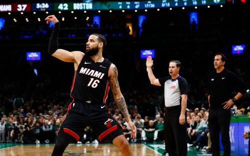 - Nella serata storica dall’arco degli Heat, nessuno fa meglio di Tyler Herro (6/11) e Caleb Martin (5/6): alla sirena sono 23 i canestri da tre punti realizzati dalla squadra di coach Spoelstra (nuovo record di franchigia), che dopo gara-1 aveva detto: “È matematica: dobbiamo tirare di più da tre. Non non lo faremo 50 volte, non è realistico, ma…”. Magari 50 no, ma 43 sì - e i 23 canestri hanno superato il precedente record che risaliva al 1° turno di playoff 2021 contro i Bucks, in gara-1 (terminata in OT)